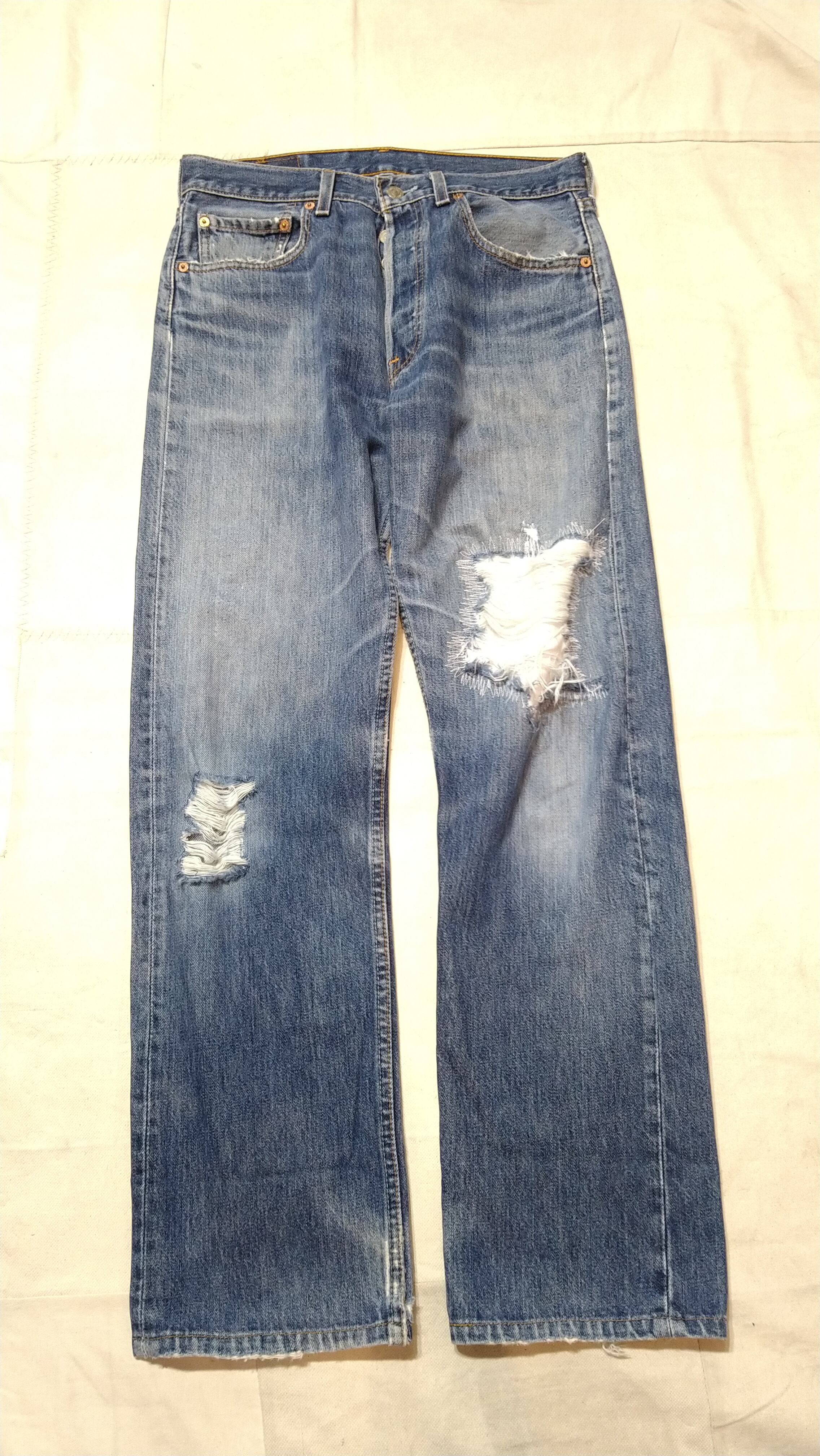 こちらはリーバイス501をリメイクしたお品。年代ものというより80年〜90年代くらいに出回っていたものです。